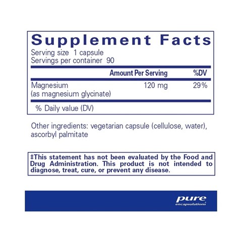 Magnesium (glycinate) is a highly bioavailable magnesium chelate, which supports the metabolism and utilization of carbohydrates, amino acids, and fats for energy. Magnesium (glycinate) helps activate enzymes for physiological functions including cardiac health.‡
